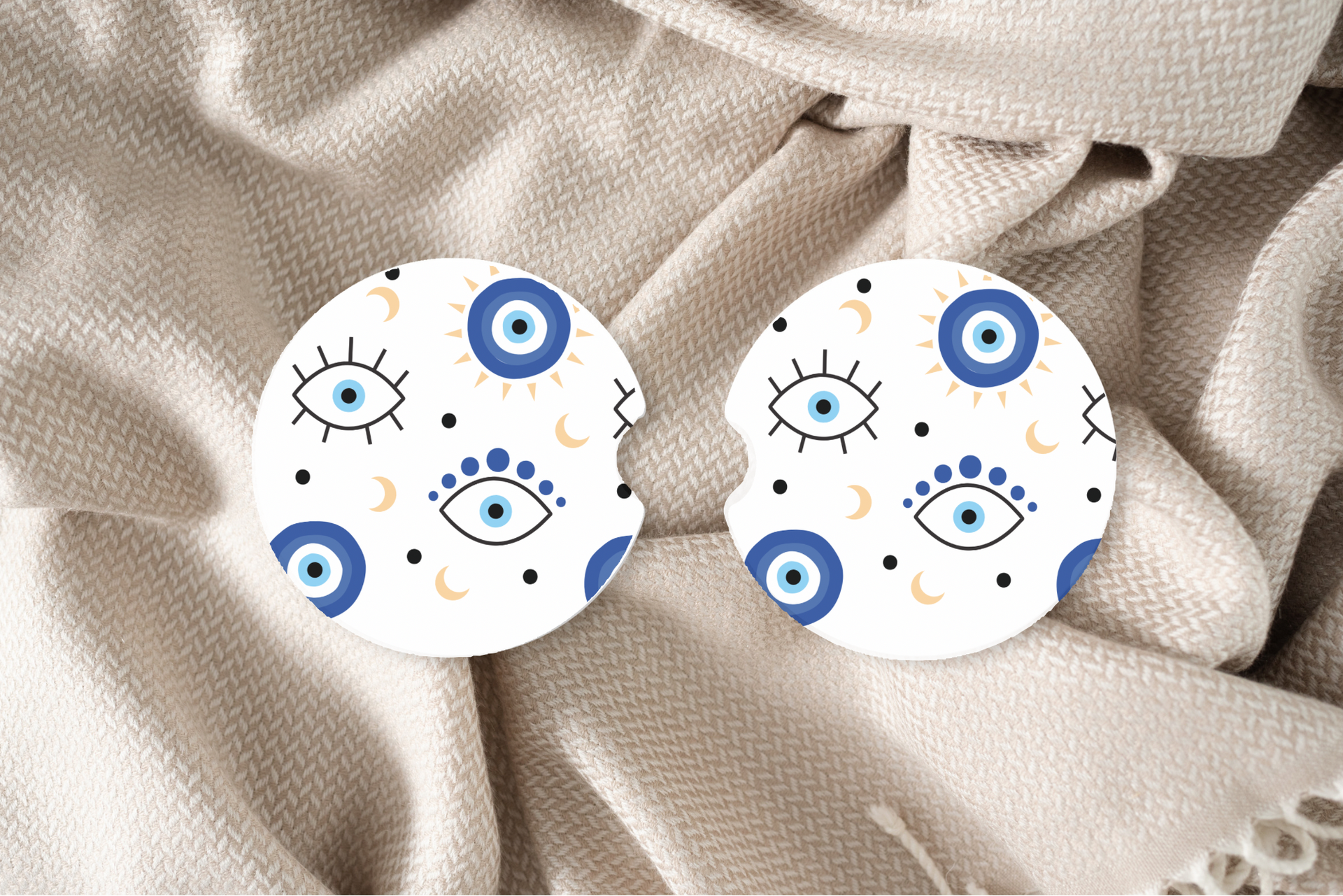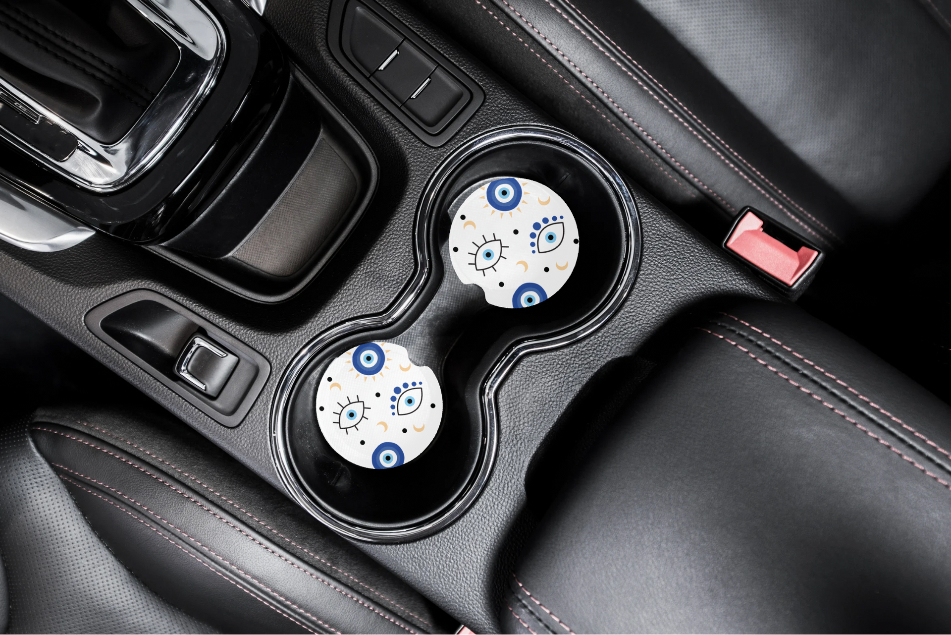 Add some style to your ride with these cute custom car coasters! These reduce condensation in your cup holders from your drinks.