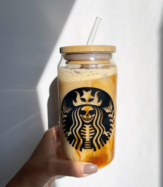 The glass includes the lid and straw.