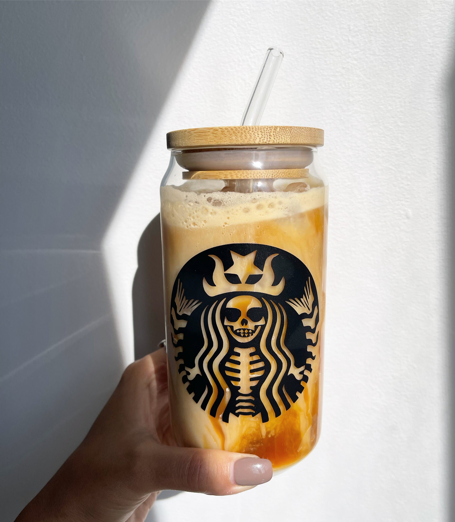 This dome glass is decorated with permanent vinyl.